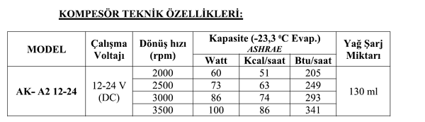 Not: 140 lt – 240 lt Arasında Buzdolapları için Kullanılmaktadır.